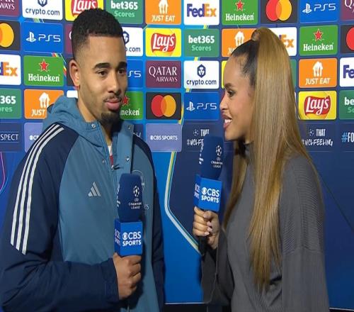 欧冠联赛阶段第7轮,阿森纳客场3-1战胜国米,本场比赛梅开二度的热苏斯赛后接受了CBS体育的采访。恭喜你。演播...
