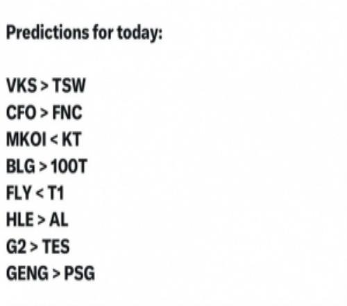 VKS战胜TSW、CFO战胜FNC、KT战胜MKOI、HLE战胜AL、BLG战胜100T、G2战胜TES、T1战胜FLY、GEN战胜PSG。