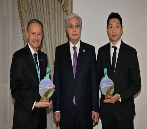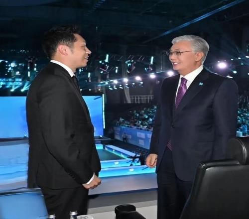 许昕与哈萨克斯坦总统托卡耶夫亲切交流