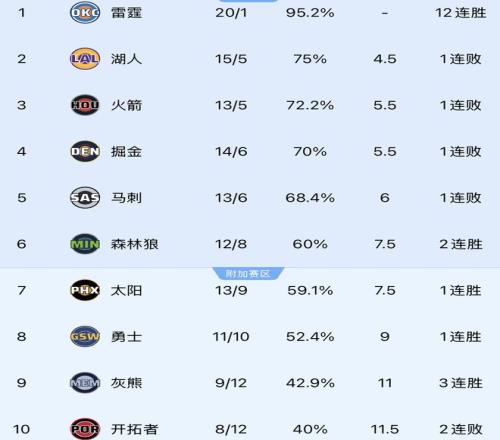 在西部排行榜上,雷霆继续稳居榜首,第2名之争很激烈,快船快垫底了。大家说哪队会在常规赛结束时排名西部第2呢?