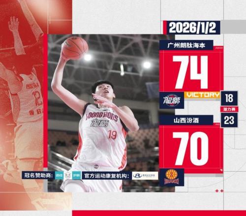 龙狮篮球俱乐部2026-01-02 22:50:232025-26赛季CBA常规赛第九轮 — 2026开门红!广州朗肽海本 74:70 战胜山西...