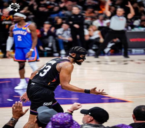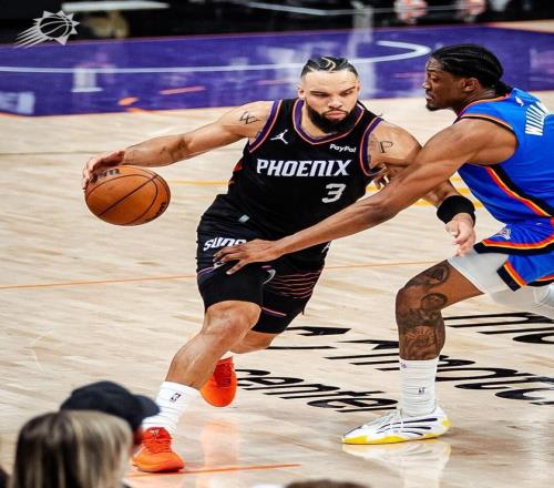 末节决战,OKC提升防守强度,并且依靠着防守反击重新取得比分领先。狄龙布鲁克斯连续单打取分,帮助菲尼克斯紧咬比分。菲尼克斯在布克、狄龙的带领之下,轰出了11比1的攻势。