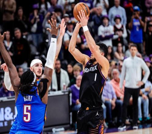 北京时间1月5日,NBA常规赛火热进行。太阳坐镇主场挑战卫冕冠军雷霆,该场比赛是双方本赛季的第三次交手。前两战斗取得了胜利的OKC,目前斗志正盛。豪取4连胜的雷霆,战绩领跑西部赛区和联盟。哈尔滕施泰因、杰林威廉姆斯伤停,雷霆的首发五虎是亚历山大、霍姆格伦、杰伦威廉姆斯、华莱士与多尔特。杰伦格林、格雷森阿伦伤停,菲尼克斯的首发五虎是德文布克、狄龙布鲁克斯、罗伊斯奥尼尔、吉莱斯皮与马克威廉姆斯。两大西部劲旅,在此役展开了激烈争夺。比赛的走势,也出现了多次转折。双方缠斗至最后时刻,才得以分出胜负。