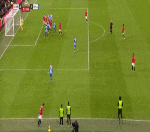第64分钟,维尔贝克弧顶位置接球,左脚爆射上角破门弑旧主,布莱顿2-0领先曼联。